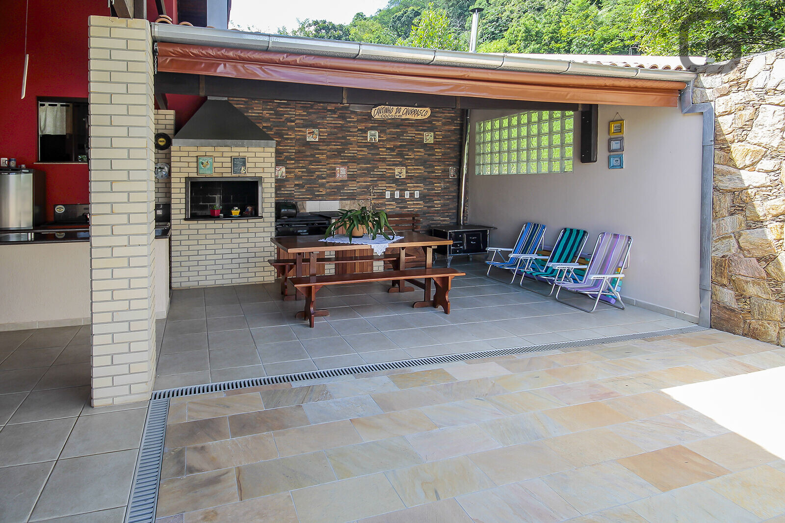 - Área de festas com churrasqueira e fogão à lenha